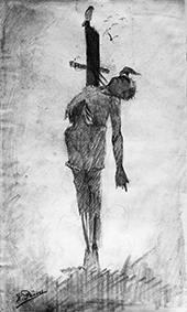 Une série de dessins originaux illustrant la légende d’Ulenspiegel exposés en 1968 à la Galerie l’Atelier et dont on n’a pu jusqu’ici retrouver la trace.